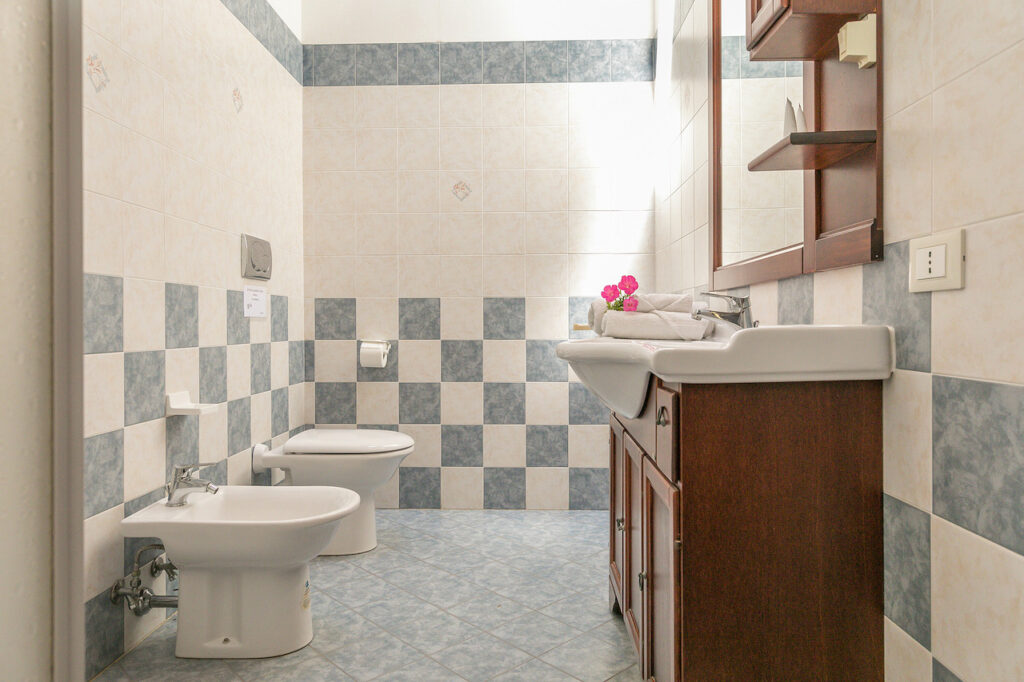 E’ composto da cucina-soggiorno con divano letto matrimoniale, 2 camere matrimoniali più un letto singolo, grande bagno con box-doccia e grande terrazza. L’appartamento è dotato di TV, impianto di riscaldamento e condizionamento indipendente. La cucina è dotata di frigorifero con congelatore, fornello 4 fuochi, forno, forno a microonde e di tutto il necessario per cucinare. Il prezzo può variare in base alla stagione compresivo di: biancheria da bagno e da camera, consumi e le pulizie finali.